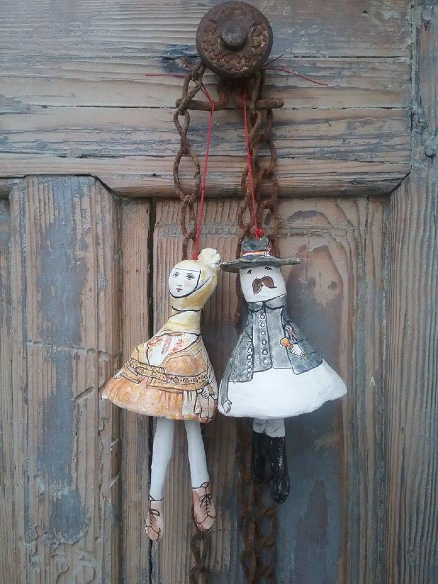 Primul atelier (14 februarie) - Vom realiza prin modelare doi clopotei din lut reprezentand un cuplu scheian. Dupa uscare, obiectele vor fi arse in cuptorul de ceramica.