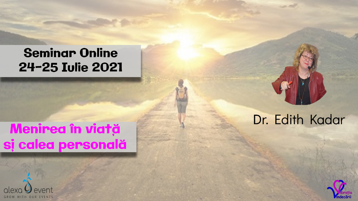 Detalii si inscrieri aici : https://alexaevent.ro/evenimente/seminar-cu-dr-edith-kadar-menirea-in-viata-si-calea-personala-2/