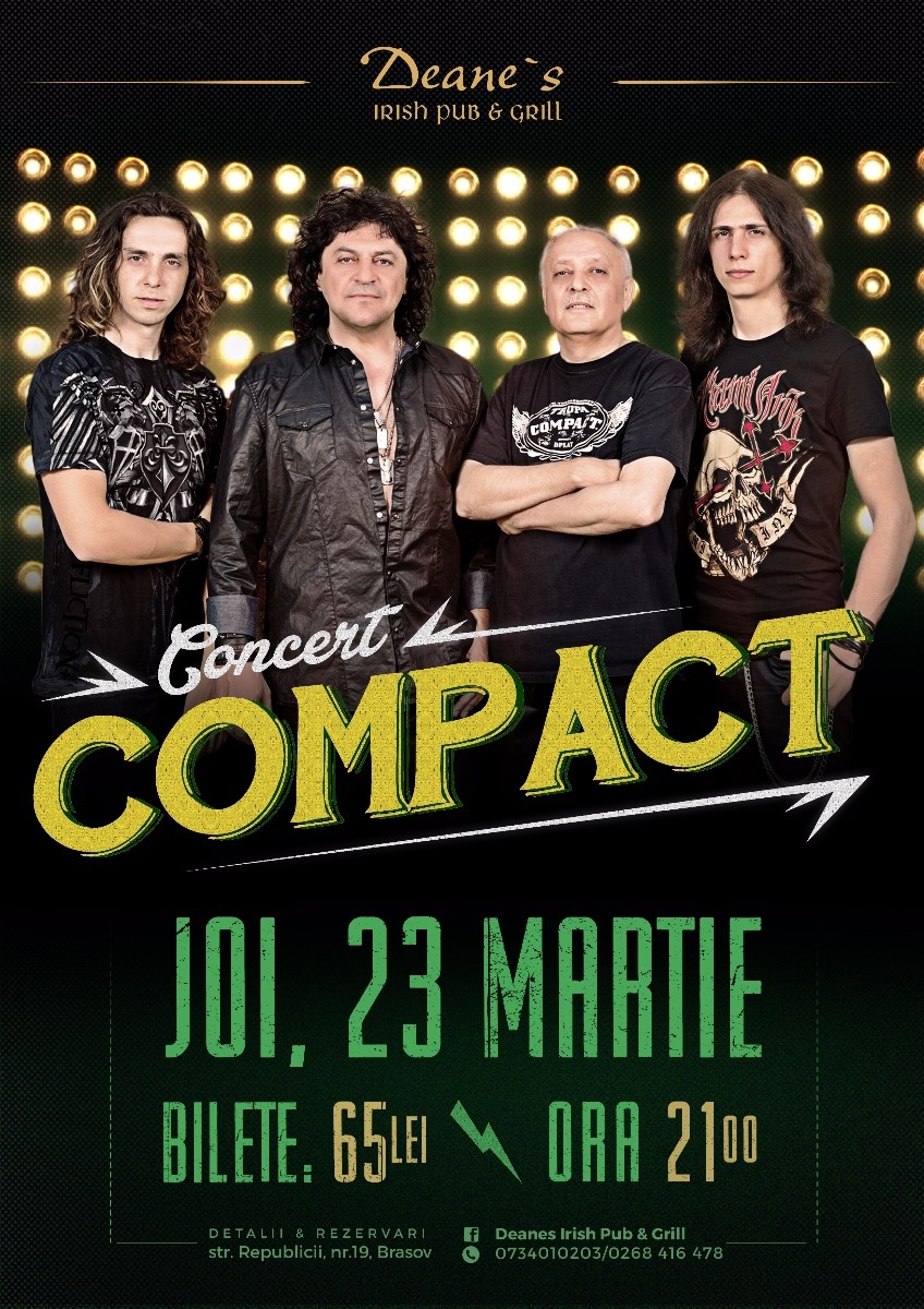 Pe 23 Martie, de la ora 21.00, Deane's Irish Pub te invită la un concert extraordinar COMPACT, la fel de vibrant precum cele mai îndrăgite melodii ale formaţiei.