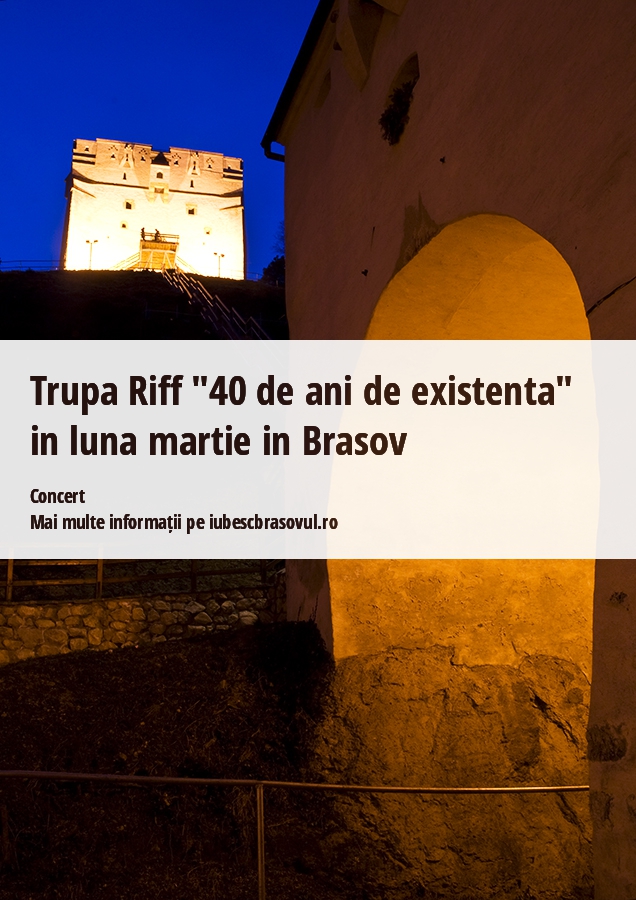 Formatia Riff (Sibiu) sarbatoreste anul acesta 40 de ani de existenta (1970-2010) , fiind una dintre cele mai longevive trupe de rock din Romania. Vineri, 29 ianuarie, trupa porneste intr-un turneu national pana pe 21 mai, timp in care vor parcurge 20 de orase printre care si Brasov in luna martie.