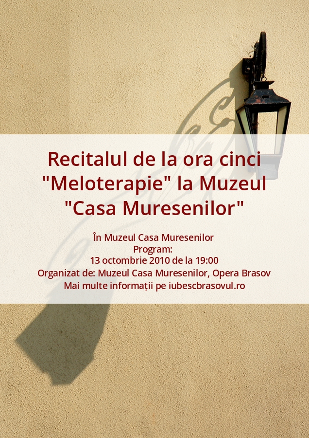 Opera Brasov si Muzeul "Casa Muresenilor" Brasov va invita miercuri, 13 octombrie 2010, ora 17,00 la Recitalul de la ora cinci - Meloterapie.