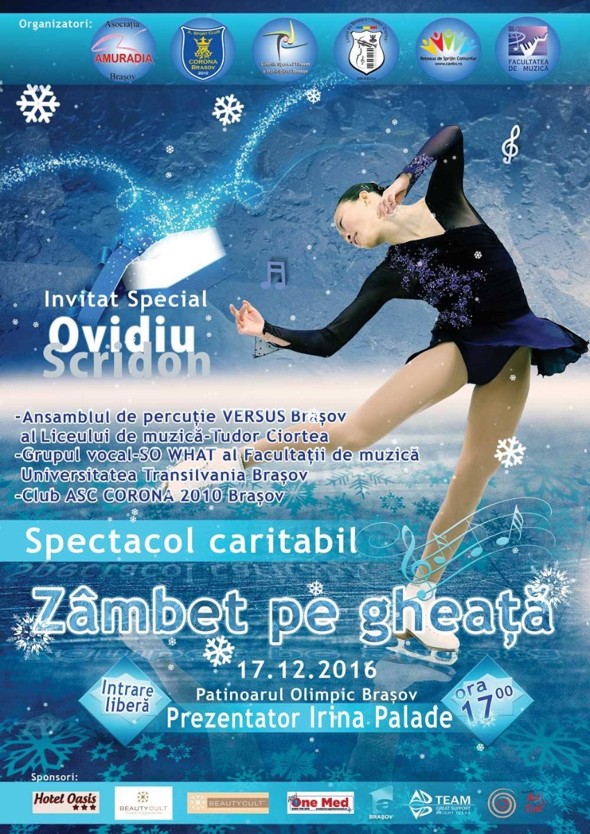Asociația AMURADIA vă invită în data de 17 decemebrie 2016, ora 17:00 la spectacolul caritabil "Zâmbet pe gheață", care va avea loc la Patinoarul Olimpic Brașov.