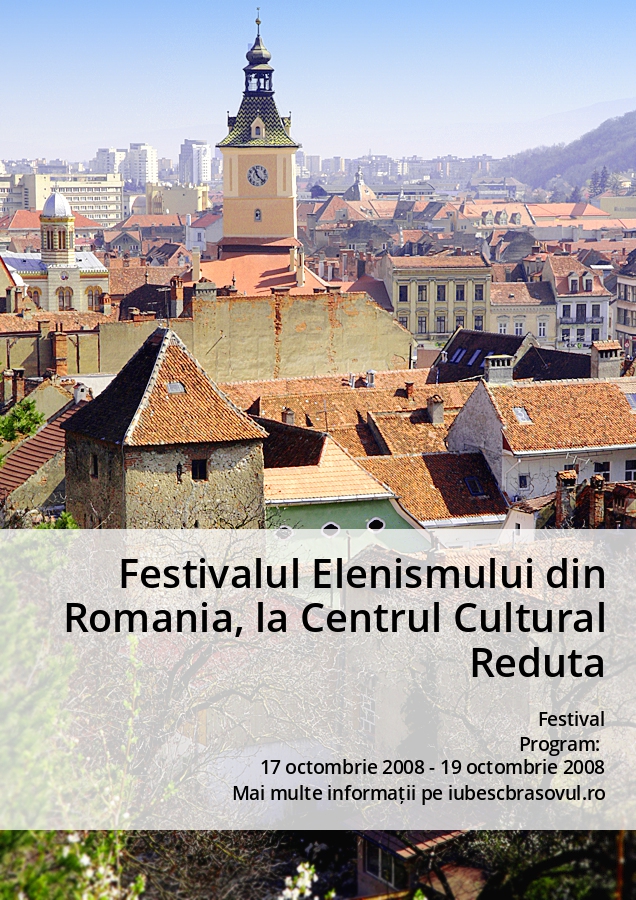 Sub egida Ambasadei Republicii Elene din Romania, Centrul Cultural Reduta gazduieste, vineri, 17 octombrie, ora 19 si sambata, 18 octombrie, ora 10, Festivalul Elenismului din Romania. O serie de manifestari culturale sustinute de mai multe comunitati din tara, urmeaza dea culoare acestui eveniment.